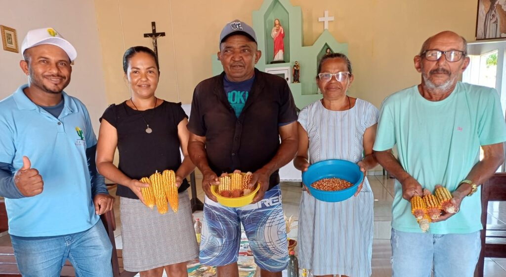O encontro foi iniciado com um trabalho sobre biodiversidade e o projeto das sementes crioulas, reforçando a importância da preservação e multiplicação das espécies adaptadas ao semiárido. Em seguida, os participantes vivenciaram um momento prático de colheita do milho na roça.