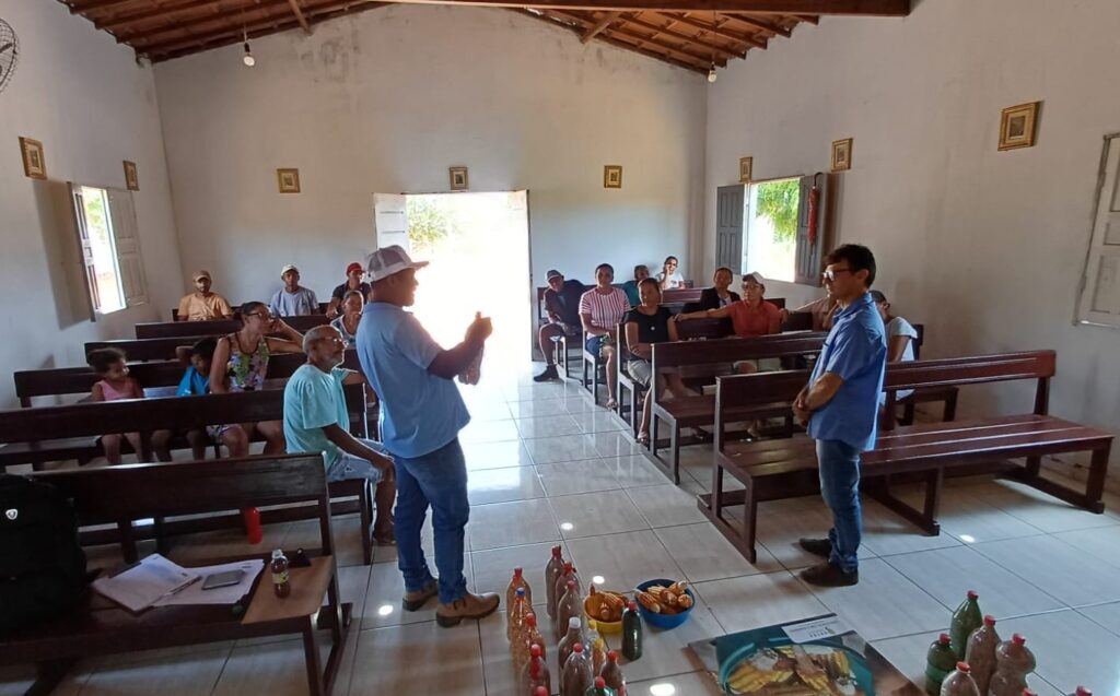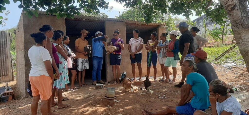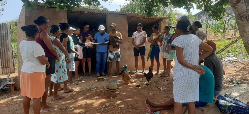 À tarde, as atividades seguiram no aviário comunitário, onde os participantes aprenderam sobre a produção de milho hidropônico — técnica que contribui para a alimentação dos animais, especialmente em períodos de estiagem.